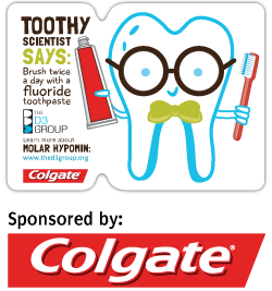 Thanks to sponsorship from Colgate, we have some really cool Toothy Scientist stickers available to dental professionals across Australia and New Zealand. Naturally, we ask that you reserve these as a special treat for 'Hypomin kids' only. Besides their reward and educational value ("Toothy Scientist says: Brush twice a day with a fluoride toothpaste"), the stickers contain our website address.