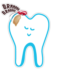 The first job is to gently rub away the Crumbly Part of Toothy. Dentists use a special Buzzy Rubbing Machine that sounds a bit like a racing car. Some Dentists will make it go "Brmmm Brmmm" if you ask