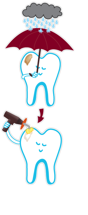 Once the Crumbly Stuff is rubbed away, it is time to Fill Up the Pothole. The Dentist may use some White Gooey Paste for this job. This Paste sets rock hard once it is zapped with a special light beam. Sometimes this part of the job can be a little tricky. So once again it is good to listen carefully and sit as still as you can.