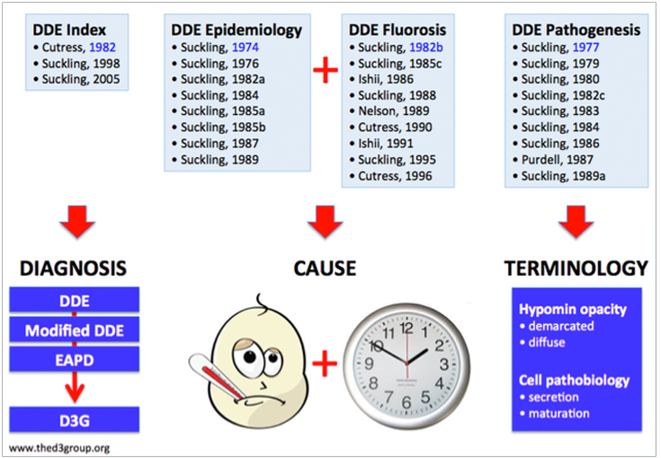 Before Grace there was little incentive to distinguish the clinical presentations of enamel defects, so few people did. After Grace, we had moved from three clinical descriptors (hypoplasia, demarcated opacity, diffuse opacity) to scientific terms that were mechanistically tied with pathology. Thus, hypoplasia was linked to deficiency in enamel secretion, and hypomineralised opacities to defective enamel maturation – with all three types having distinct aetiological origins. And loss of enamel from severe opacities (today's "post-eruptive breakdown") was rightfully distinguished from hypoplasia. Alas, despite this major advance made decades ago, little heed has been taken by most practitioners of today – an educational problem D3G is working hard to rectify!