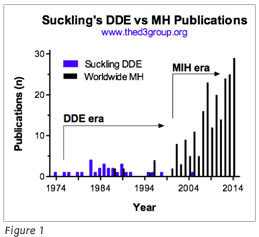 Grace's research kicked off what we hereby term the "DDE era". As Figure 1 shows, her DDE publications spanned more than 25 years, infiltrating what we in turn call the "MIH era". As evident in the bibliography below, this research spanned a broad array of disciplines and approaches, breaking vast tracts of new ground. In 1976, Grace was also first to publish the term "developmental defects of enamel" (DDE), in a paper title and according to PubMed at least. We think all of this qualifies her as doyen of the DDE era, and superstar in D3G eyes today.